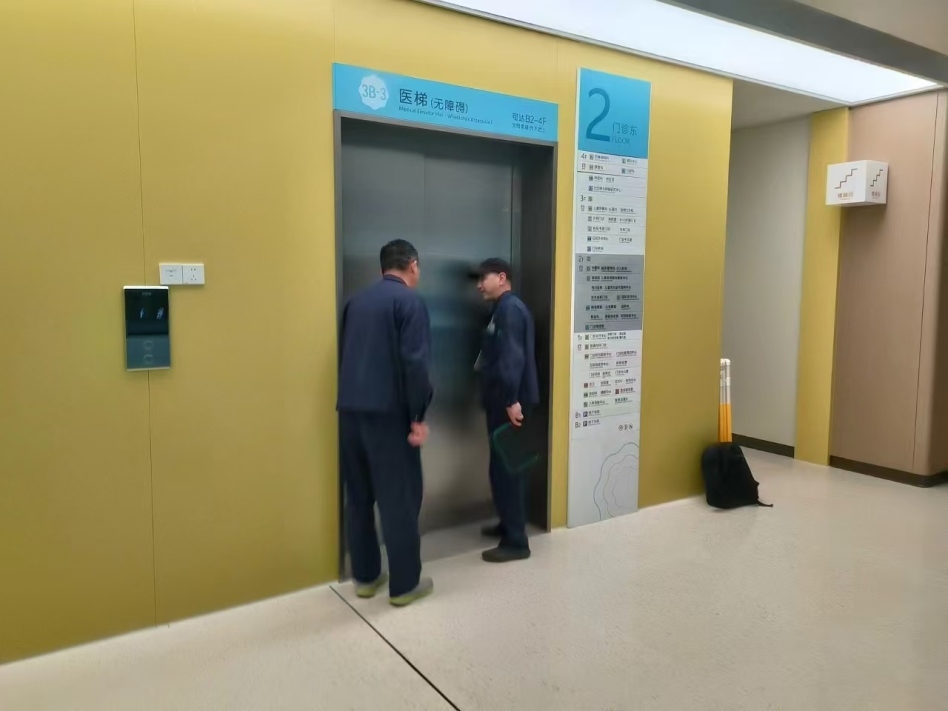 “殷经理,医技楼B3电梯有5名人员被困,电梯停靠在2F,电梯门无法打开,梯内无重大疾病人员,目前情况稳定。”接到消控室电话后,项目部工程主管殷玉同立即联系第三方电梯维修单位,并同步将电梯困人事件上报医院总务部负责人杨帆。