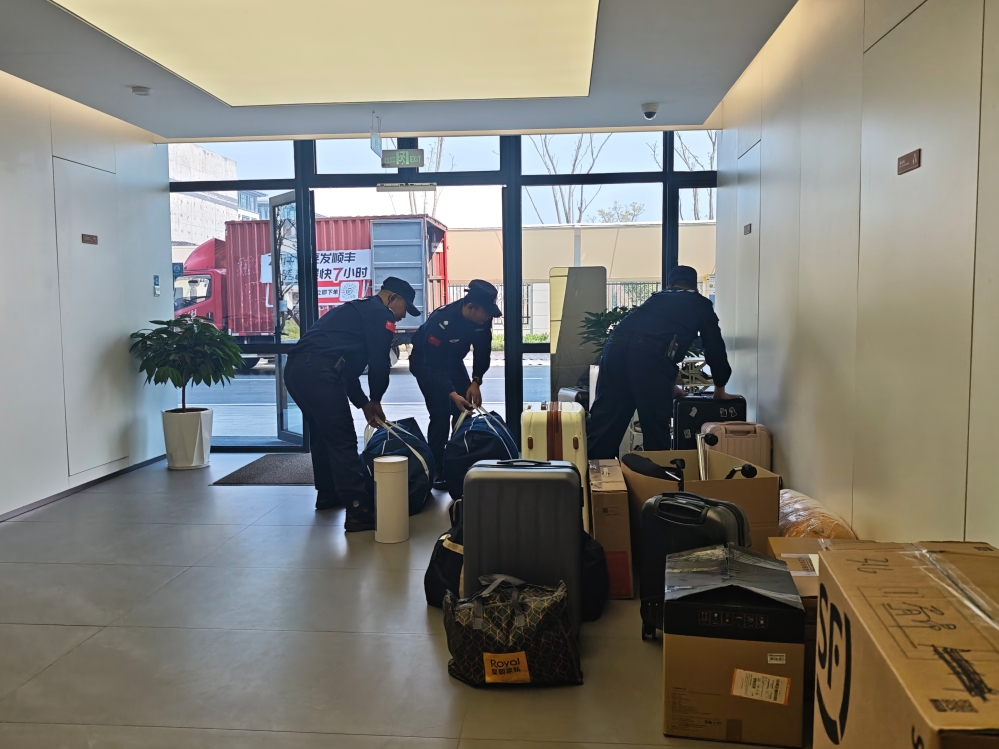 现场,项目部组织员工组成“搬运小分队”,为需要帮助的同学搬运行李,减轻负担,让大家轻松入住新“家”。