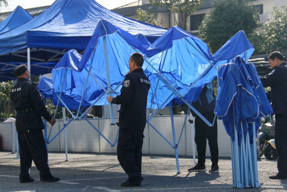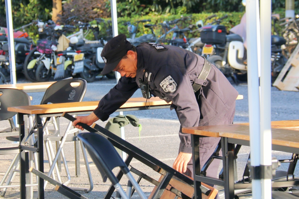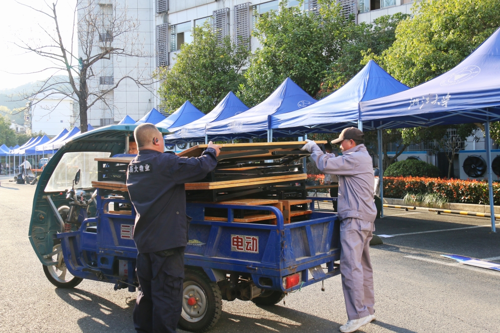 在招聘会结束后,为尽快恢复场地原貌,分中心员工不辞辛劳,立刻着手收尾工作。大家齐心协力、分工协作,投入了两个多小时,高质量完成帐篷、桌椅等物品的整理与回收,以及会场的深度清洁。