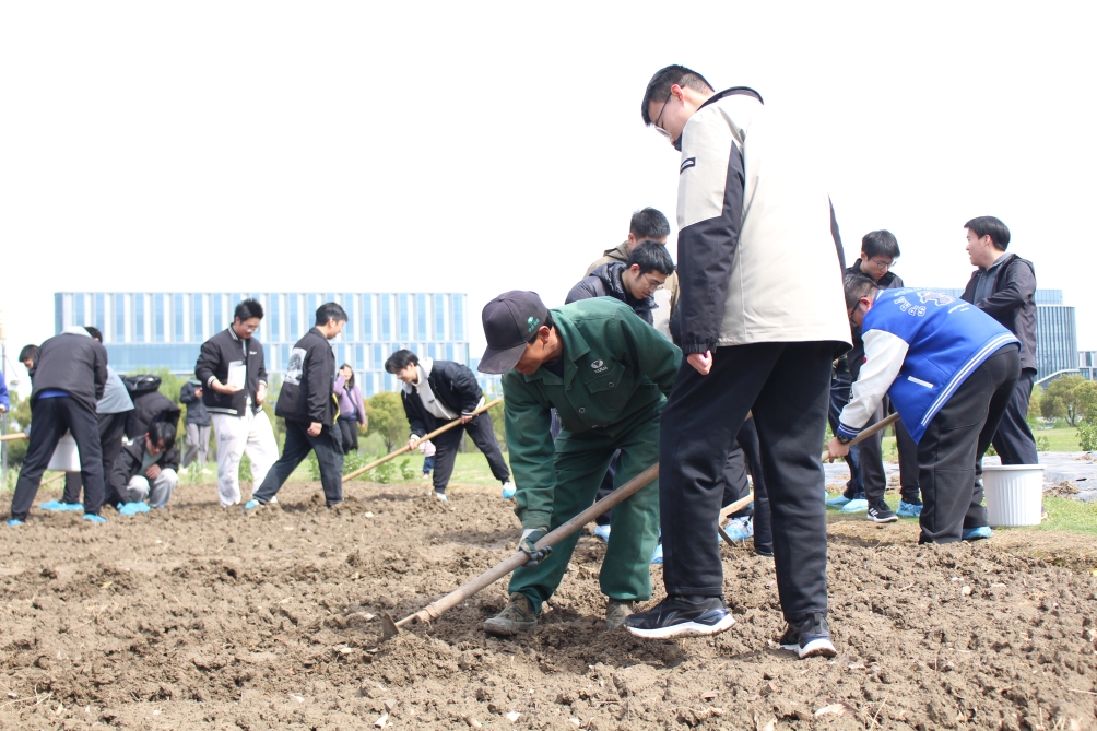镜头下,在浙江大学海宁国际校区东北角的预留地,一幅繁忙的春耕景象映入眼帘。