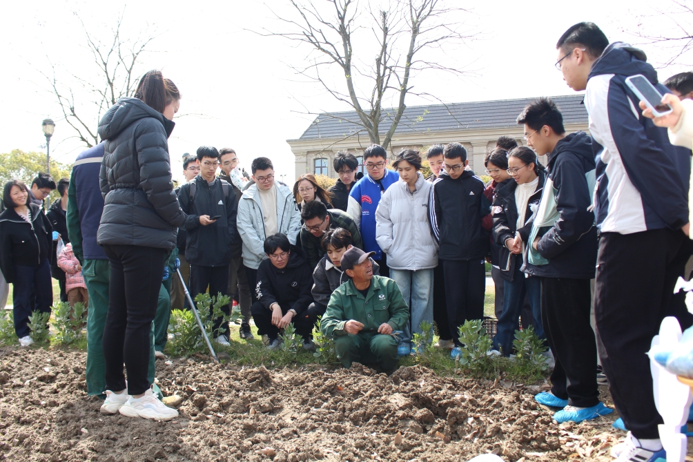 现场,从翻土整地、播种间距到养护要点,绿化师傅们耐心讲解,并一一示范。学生们听得津津有味,不少人还用手机记录下每一个步骤。