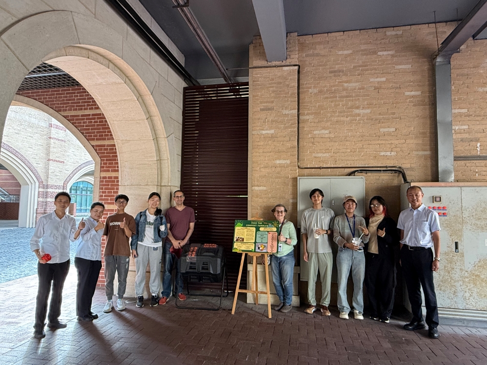2024年10月,在项目部与学校Eco社团的协作下,校区首个“堆肥桶”顺利启用,绿化垃圾资源化处理的“新模式”正式步入了试验阶段。