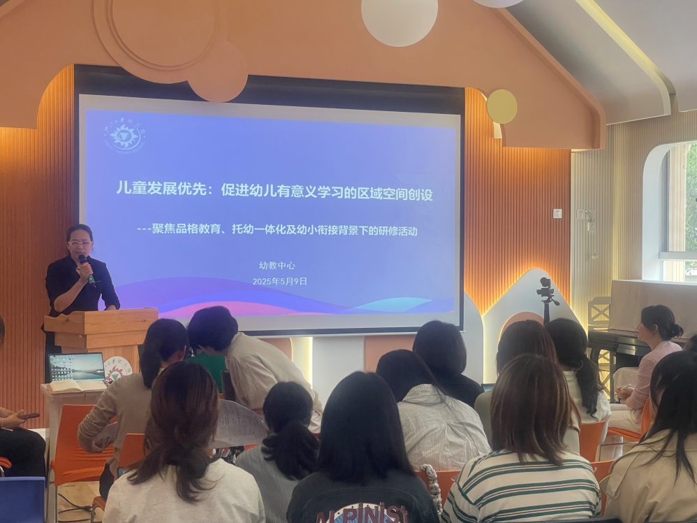 继3月在紫金港分园成功开展第一次研修活动后,5月9日,“儿童发展优先:促进幼儿有意义学习的区域空间创设系列活动第二次研修——重点聚焦品格教育、托幼一体化及幼小衔接背景下”第一场活动在实验园开启,各分园业务园长及空班教师60余人参加了本次活动。