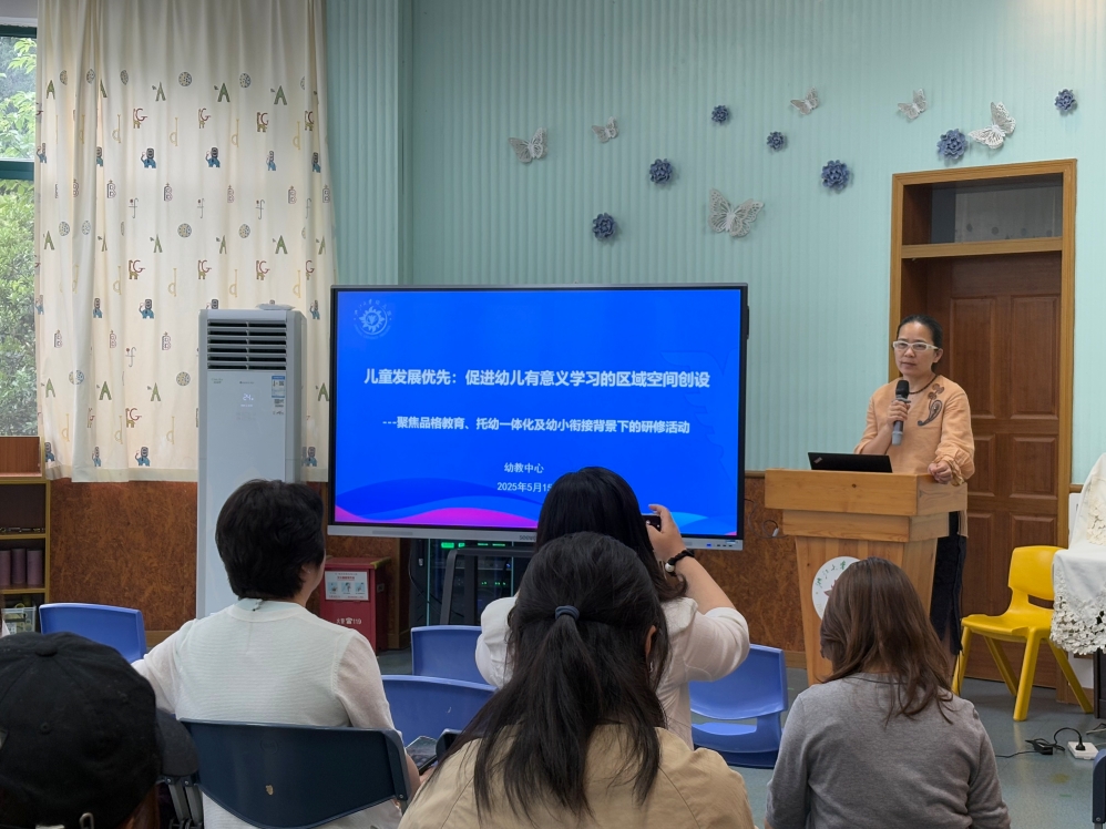 5月15日,“儿童发展优先:促进幼儿有意义学习的区域空间创设系列活动第二次研修——重点聚焦品格教育、托幼一体化及幼小衔接背景下”第二场活动在华家池分园拉开序幕。各分园业务园长及空班教师60余人积极参与,开展深度研讨,活动由智城分园业务园长丁红霞主持。