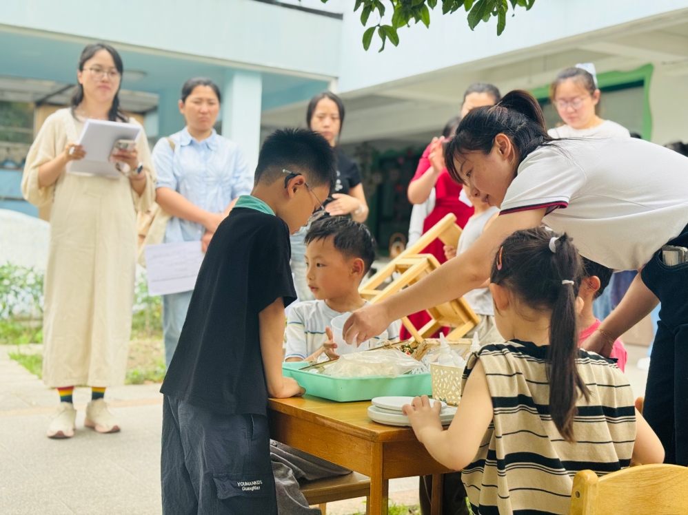 幼教中心副主任兼教科室主任何黎明在总结时指出,中心开展本次活动并由业务园长和教研组长为“先导队”带头开放、展示,反映了业务园长与教研组长作为教研引领者需要在实践中成长和锻炼,即“做事修人”。其次,在研修方式上,基于现场以及现场中的问题展开讨论,体现了“贴地而行”的研修方向。何黎明主任表示,教师要转变观察视角,“低头看儿童”,以敏锐的观察力与耐心倾听孩子的想法与需求,真正走进幼儿的世界,感受教育的美妙;第二,开展活动需进行价值判断,以幼儿发展为核心筛选、设计符合儿童成长需求与教育目标的活动内容;第三,在空间与思维层面有“突破”,突破固有思维方式,拓展教育活动的时间与空间维度,为幼儿营造更优质的学习与成长环境。