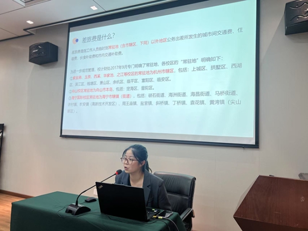 在第二场财务知识培训中,俞诗岚根据中央八项规定精神的相关要求,着重阐述了三公经费的定义,并围绕“财务报销”主题,对中心业务相关的差旅、公务接待、修缮工程等费用的报销注意事项展开深入讲解。俞老师清晰界定了非差旅的常驻地范围,梳理差旅报销的详细流程,明确交通、住宿、伙食等各项差旅费用标准;强调公务接待“先审批后接待”原则,细致说明用餐、住宿等接待规定及标准;介绍修缮工程报销的全流程规范操作,整理了立项、招投标、施工、验收、结算等环节所需的报销材料清单。此外,她还介绍了开票规范、合同结算及底单留存等财务工作的注意事项。