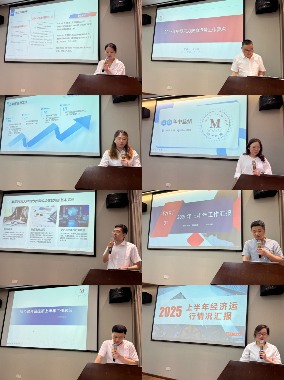 后勤集团党委副书记、总经理,公司董事长吕斌在讲话中对公司上半年的工作和管理团队的努力付出给与了肯定,他指出在市场竞争压力持续加大、经济基本面未完全向上的大环境下,同力教育公司保有存量项目,开拓增量项目,上半年的工作“不容易”。希望管理团队以良好的心态、务实的姿态积极乐观地应对市场环境的变化及政策调整带来的对公司业务发展的影响。他指出班子要“聚焦谋篇”,认真分析当前面临的问题,谋划好新一轮的发展。他以“真干”“巧干”“初心”“求精”八个字,对管理团队提出工作要求。对如何更好的以“浙大饮食”品牌赋能、进一步擦亮浙大饮食这一金名片;如何聚焦精细化管理持续提升企业核心竞争力等方面,提出了新的工作方向。同时对公司2025年下半年工作的重点关注面作出提醒。最后,他强调了安全生产和安全工作两个工作重点,要求与会管理人员守好安全底线、筑牢廉洁防线。