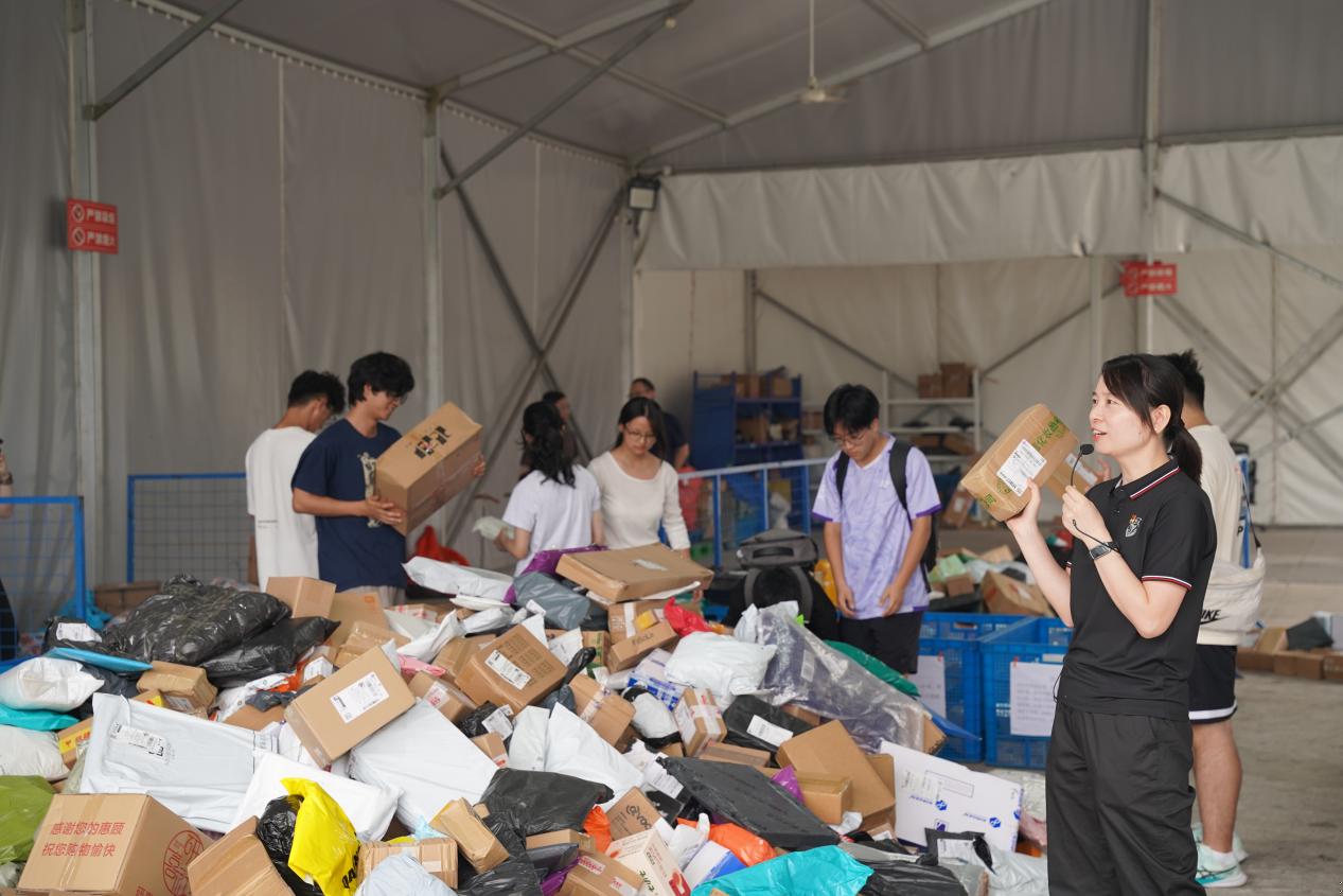 探索之旅的最后一站是白沙邮递服务站。带教老师详细讲解了货架包裹摆放规则及标签张贴要求,随后各组展开10分钟实操。体验结束后,工作人员统计各组上架个数与准确率,为表现优异的小组颁发小礼品,此次实操不仅让同学们掌握了包裹上架的基础技能,更让他们在“比学赶超”中领悟到“精益求精”的劳动精神,为后续实践打下坚实的基础。