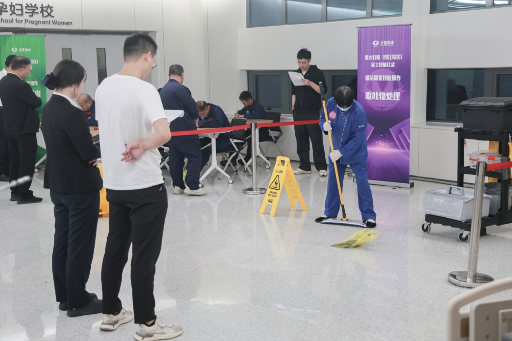 11月7日,求是物业医院分公司浙大妇院钱江院区项目部以“以技会友,赛出风采;以赛促学,提升自我”为主题,组织开展项目技能比武大赛。院区后勤保障部相关负责人到场观摩指导,项目部来自保洁、运送、工程岗位的20名一线员工参赛。