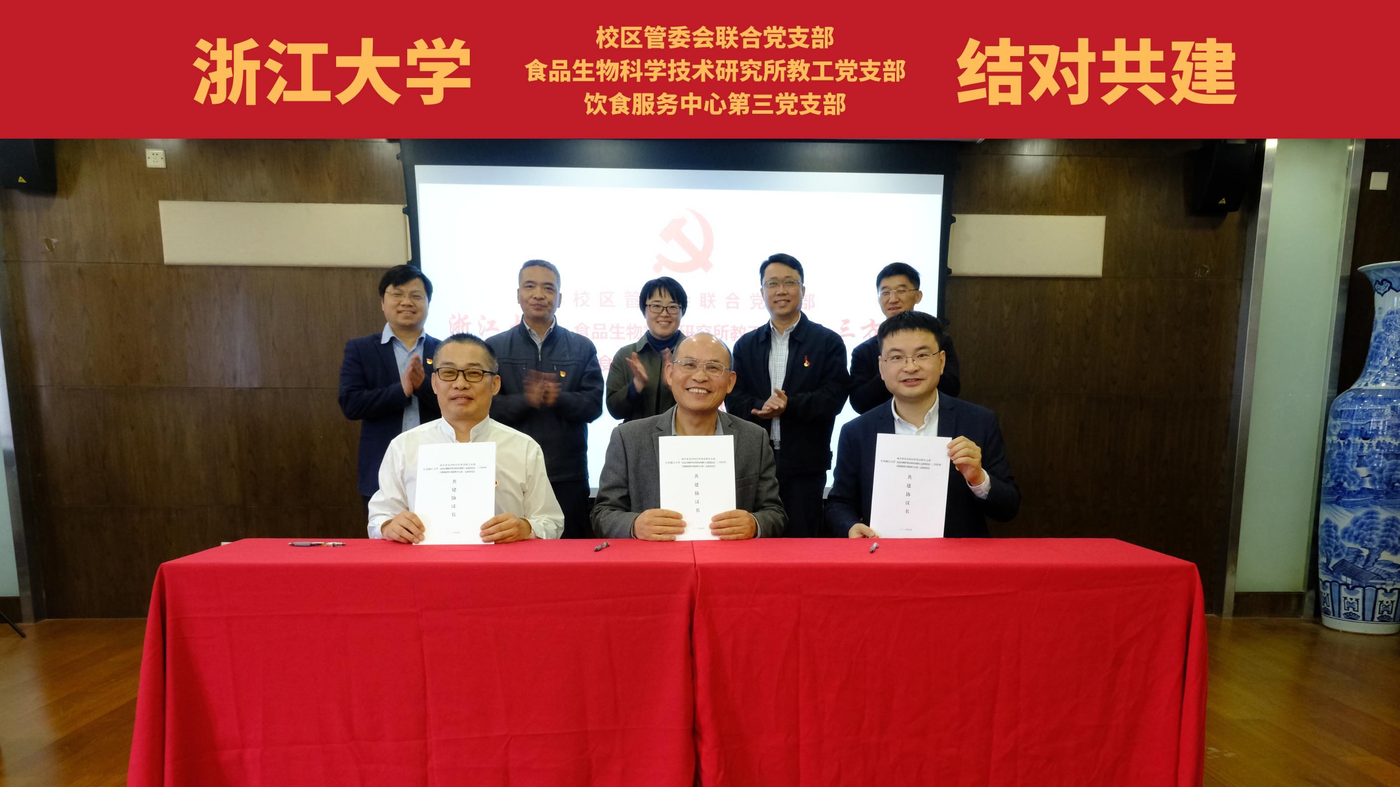 5月11日下午,饮食服务中心第三党支部与校区管委会联合党支部、食品生物科学技术研究所教工党支部联合签署共建协议,拉开三方结对共建序幕。