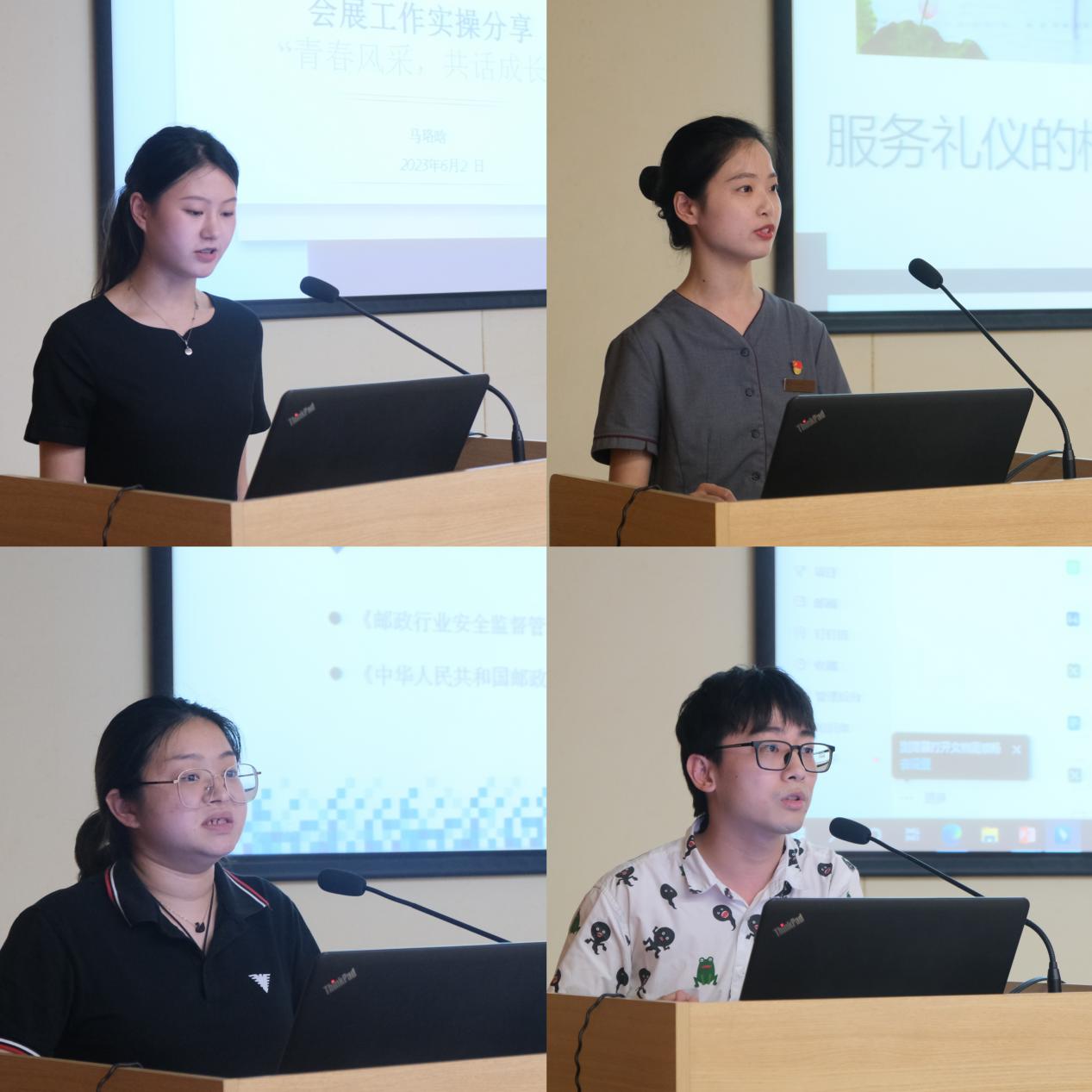 随后,来自会务、邮递、水电、财务、饮食、幼教、物业等各部门的10余名团员进行了个人分享,分享内容涉及各行业的实操技巧、专业思考、团务心得、个人成长体会等,体现出后勤青年团员扎实的专业功底、强烈的学习热情与积极向党组织靠拢的意识。