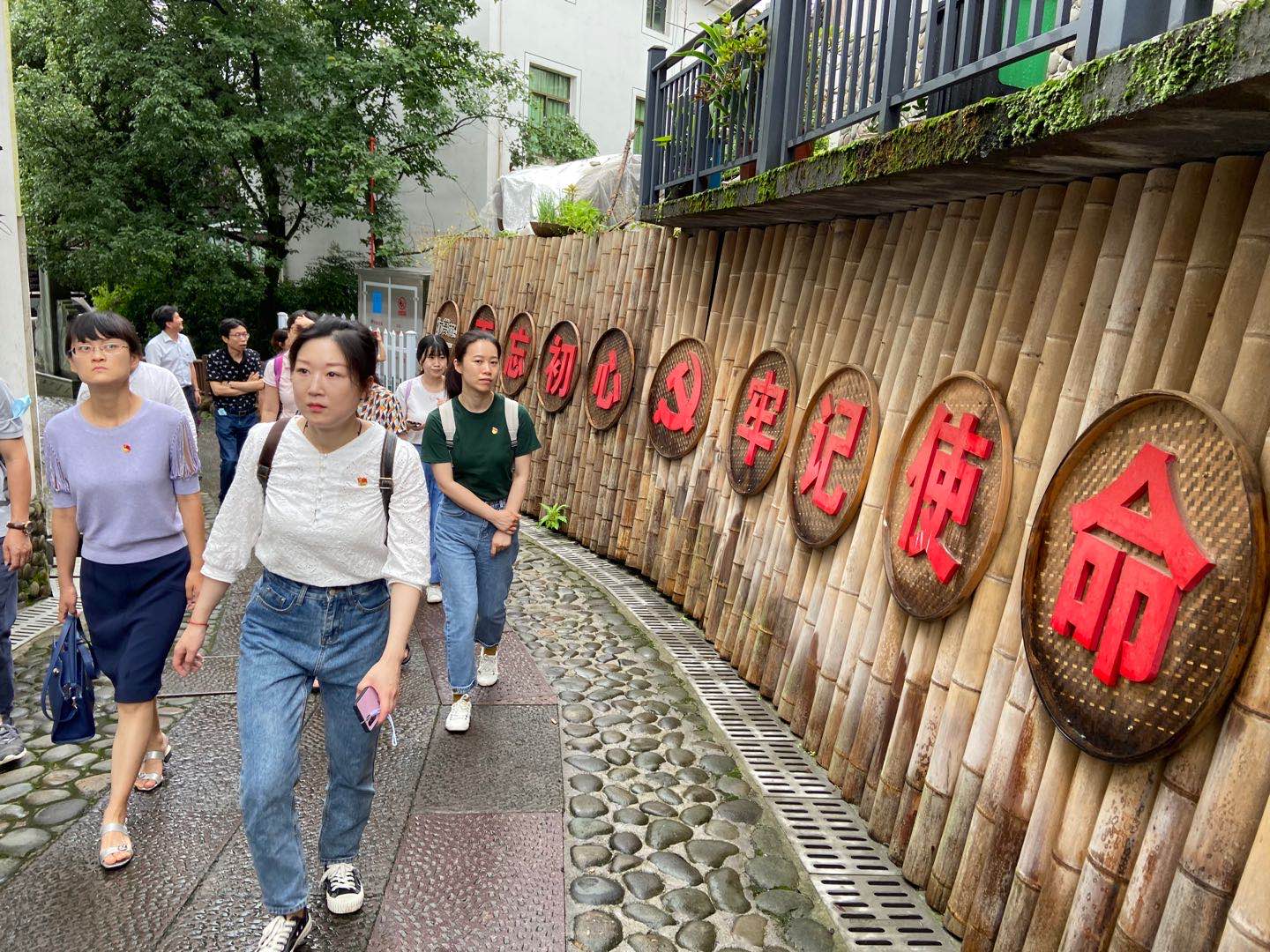 7月4日,虽然恰逢雨季,阵雨绵绵,但是红雨随心,波澜不惊。早上7时半,载着30多名后勤集团纪检和工会干部的校车从玉泉校区出发,经过3个半小时的行程,来到位于千岛湖西部的浙江省干部教育培训现场教学示范基地——淳安县下姜村,开展一堂别开生面的理念信念主题教育和干部培训现场教学。