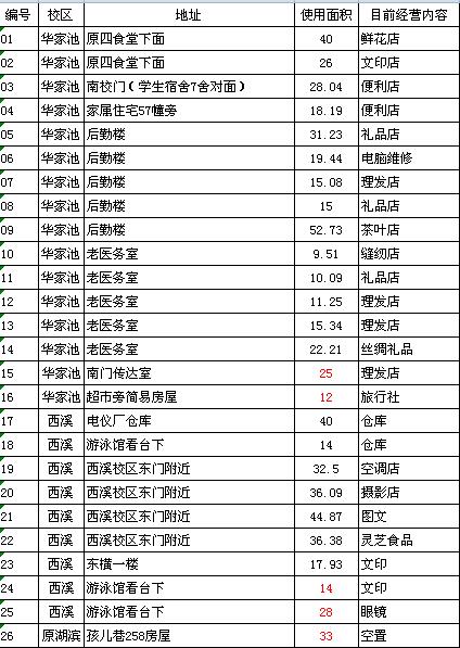 本次招租营业用房位于浙大四校区(玉泉、西溪、华家池、紫金港校区),建筑面积大小不一,地理位置相对较好,水电齐全,无产权证。现承租合同将于12月31日到期(个别网点除外),现承租户大多明确表示希望续租并将参与竞租。