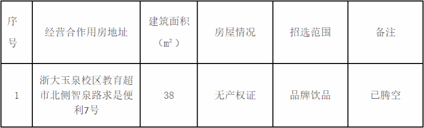 浙江同力信息科技有限公司对浙江大学玉泉校区经营合作用房进行合作经营招选。具体情况如下: