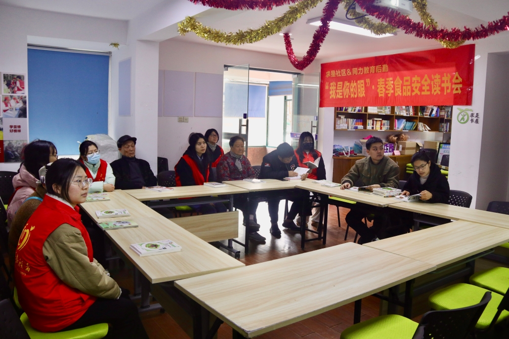 为认真落实习近平总书记关于深入开展学雷锋活动的重要指示,弘扬“奉献、友爱、互助、进步”的志愿精神,同力教育公司积极响应后勤集团“弘扬雷锋精神 • 绽放后勤风采”号召,党支部、工会、团支部携手求是社区,于3月4日上午在求是社区文化家园开展“我是你的眼”春季食品安全宣讲暨健康饮食读书会志愿服务活动。