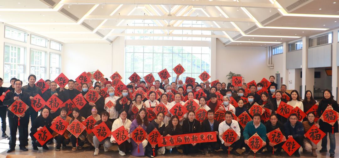 活动现场氛围喜庆热烈,一张张喜庆的红色“福”字整齐排列开来,一幅幅春联吸引着围观的员工工领福字、选春联。