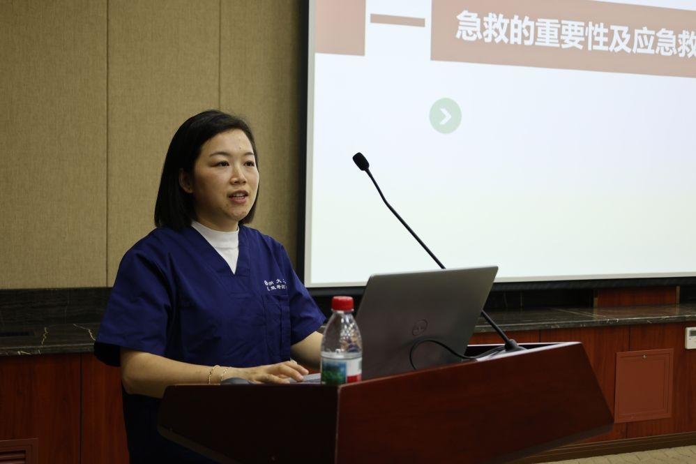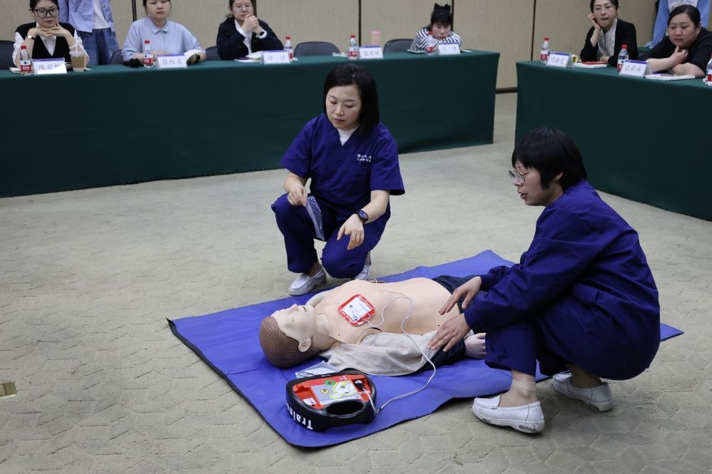 应急救护培训活动采用理论讲解与实际操作相结合的形式,结合日常生活场景和常见突发事件,系统讲解正确拨打120的方法、急救的重要性及基础知识,重点围绕心肺复苏术、海姆立克急救法等实用技能展开教学,并详细演示如何采取正确有效的应急措施。随后,大家积极参与模拟演练,在校医院培训老师的指导下亲身体验急救操作。