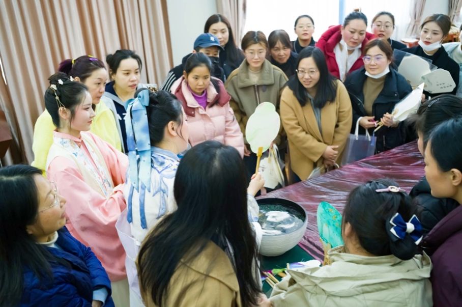 3月6日下午,“魅力课堂 非遗传承”活动在后勤集团职工之家举行。同力信息的傅梦婕向大家介绍了漆扇渊源、漂漆技艺与制作工序,演示了平入、斜入、旋转等入水法。制作现场,大家运用点、甩、弹、划,水面现斑斓图案,扇面浸入,颜料晕染出天然纹样。这场非遗体验,从指尖到扇面,是技艺传承,更是对女性智慧、创造力的礼赞。