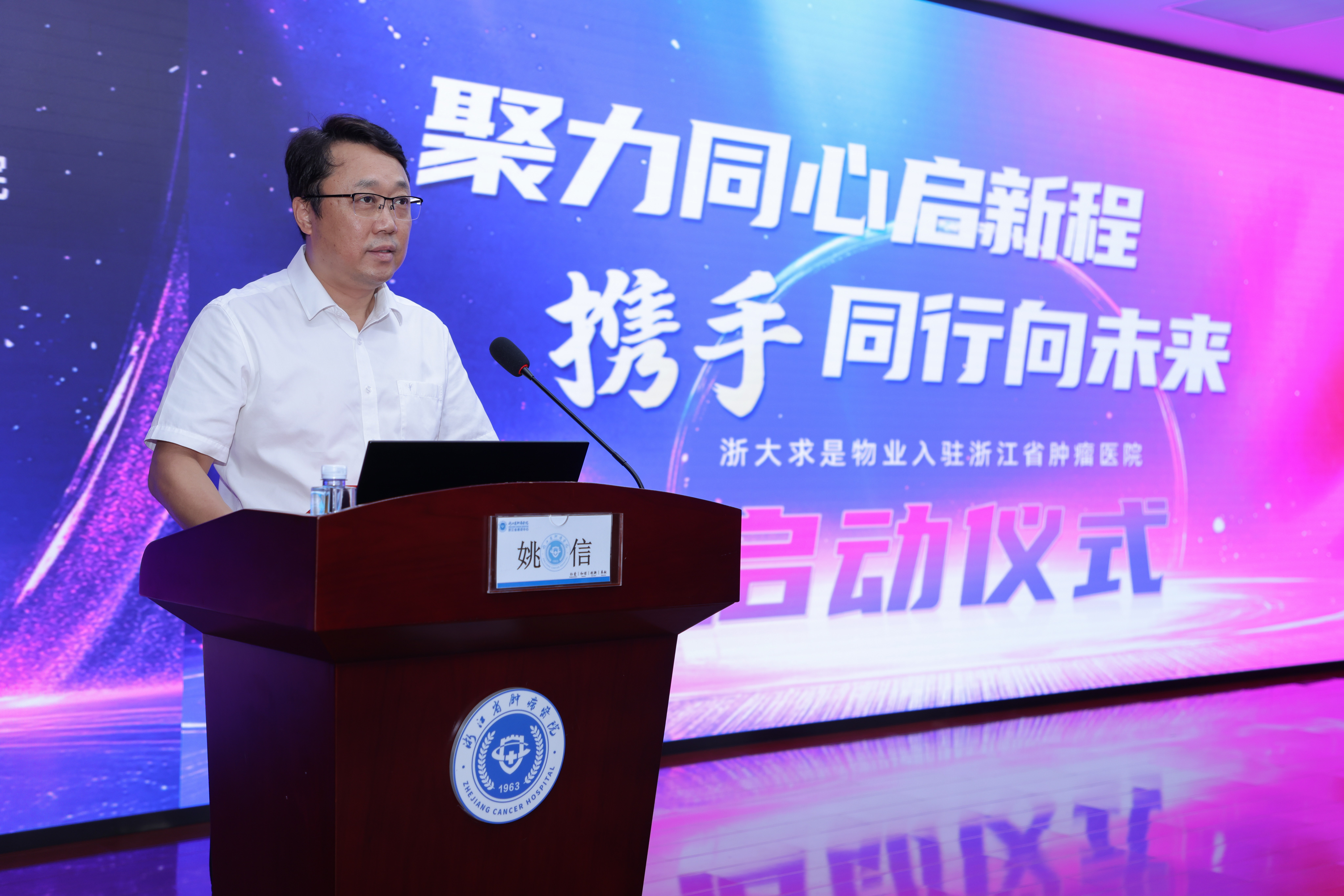 浙江省肿瘤医院党委副书记、副院长金戈,浙江大学后勤集团党委书记、董事长姚信,医院相关科室及求是物业公司相关负责人出席活动。