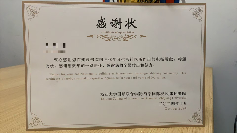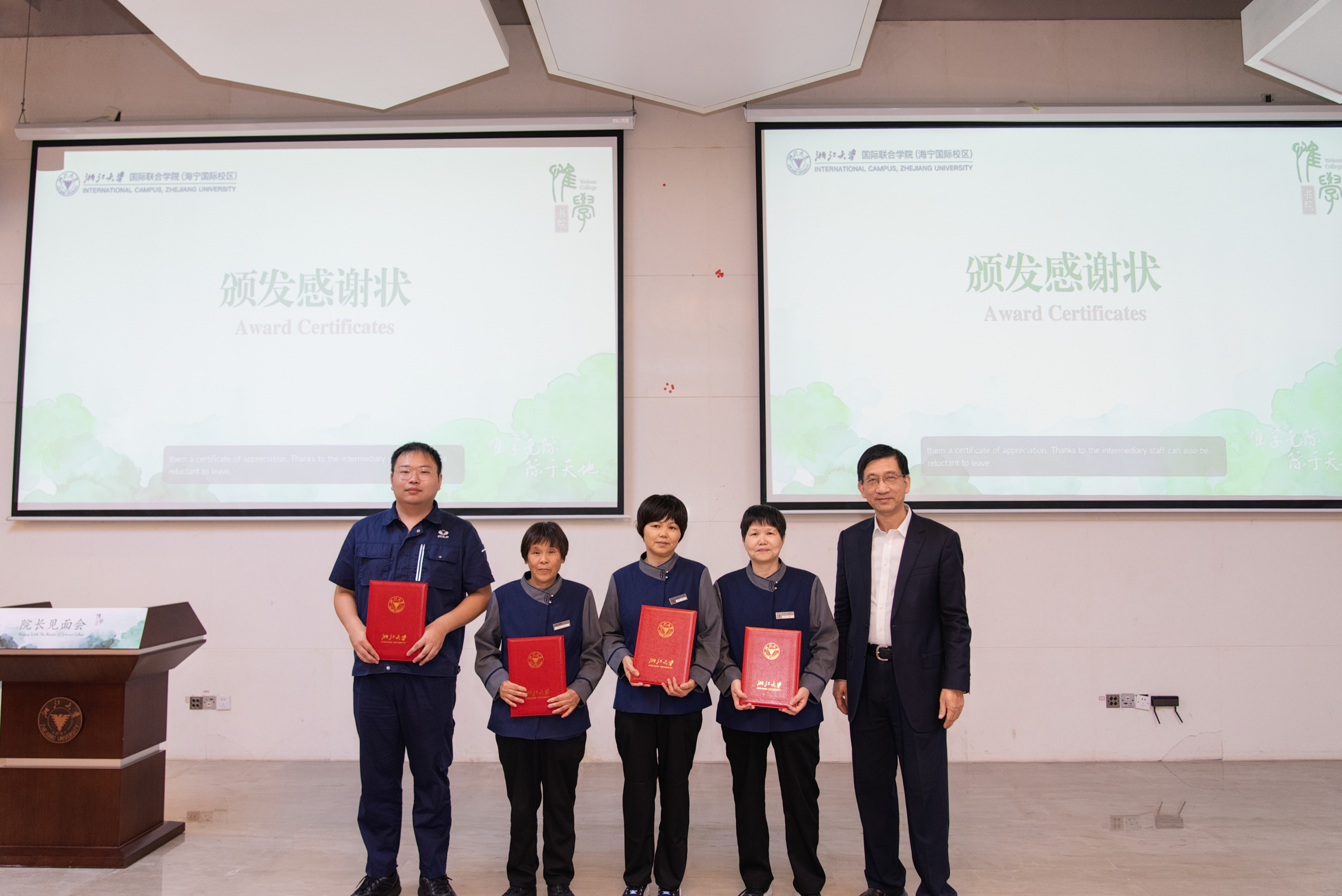 近期,浙江大学海宁国际校区各书院分别召开了“院长见面会”。会上,一年一度的“书院感谢您”院工表彰仪式顺利举办,各书院院长向多年在书院岗位辛勤工作的优秀院工授予表彰,表示感谢。