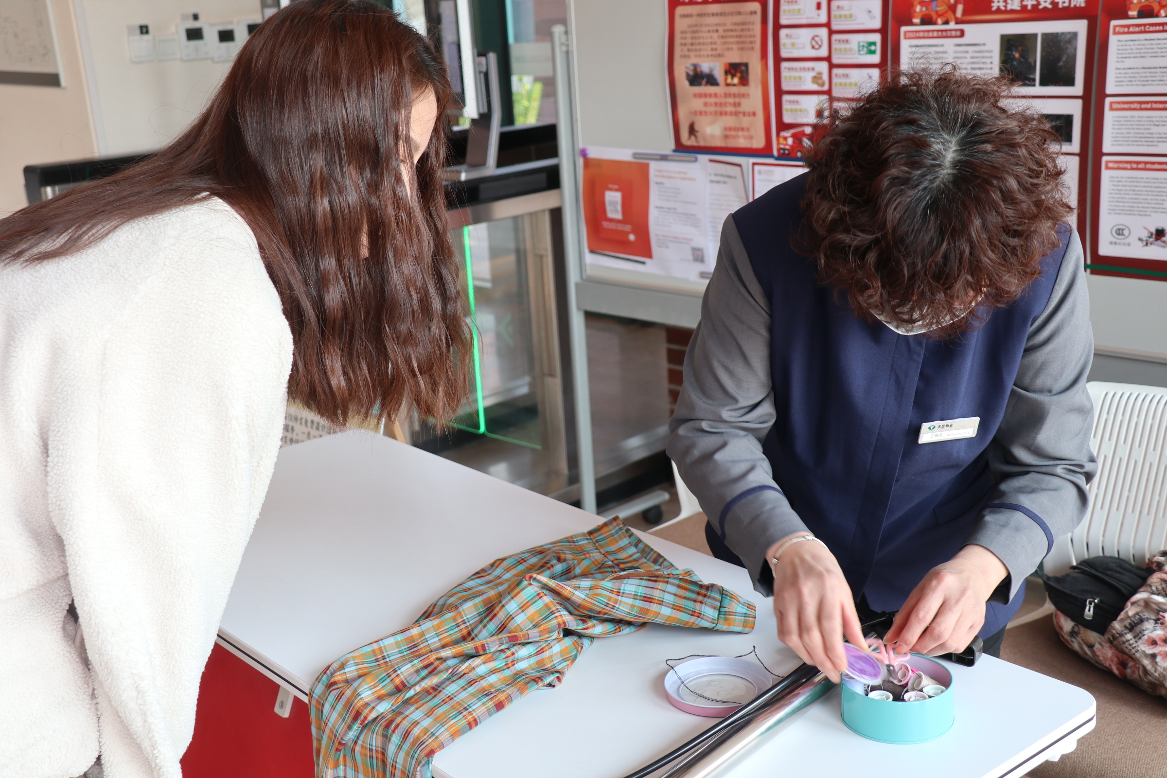 纽扣掉了、衣服开线了、裤管太长了……保洁阿姨们还是“缝补员”,一双双巧手,在飞针走线间,为学子们编织起一个温暖有爱的“家”。