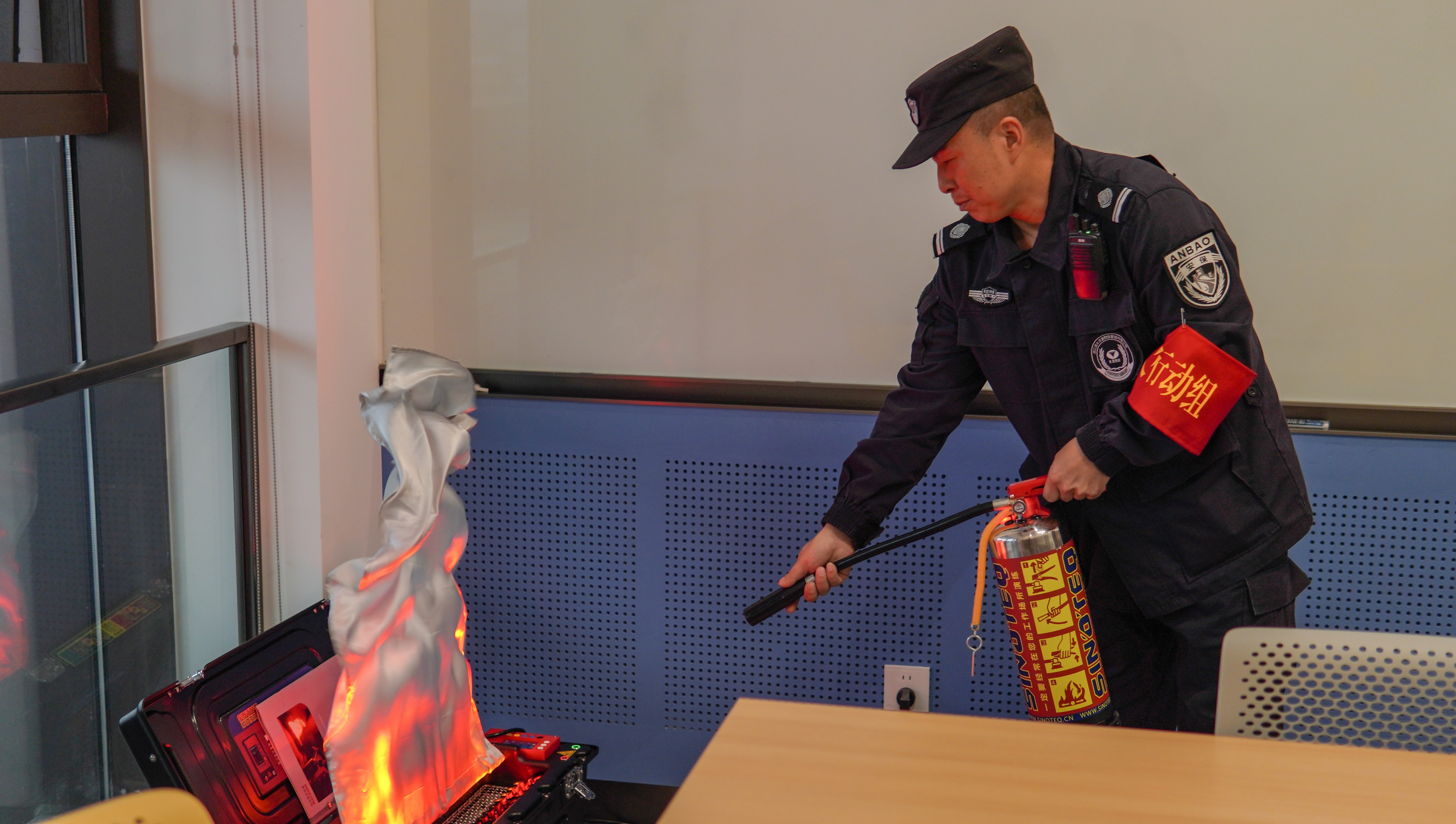 15日下午13时30分,当模拟火情触发图书馆烟感报警系统时,演练正式拉开帷幕。安保人员迅速响应,即刻启动应急预案。