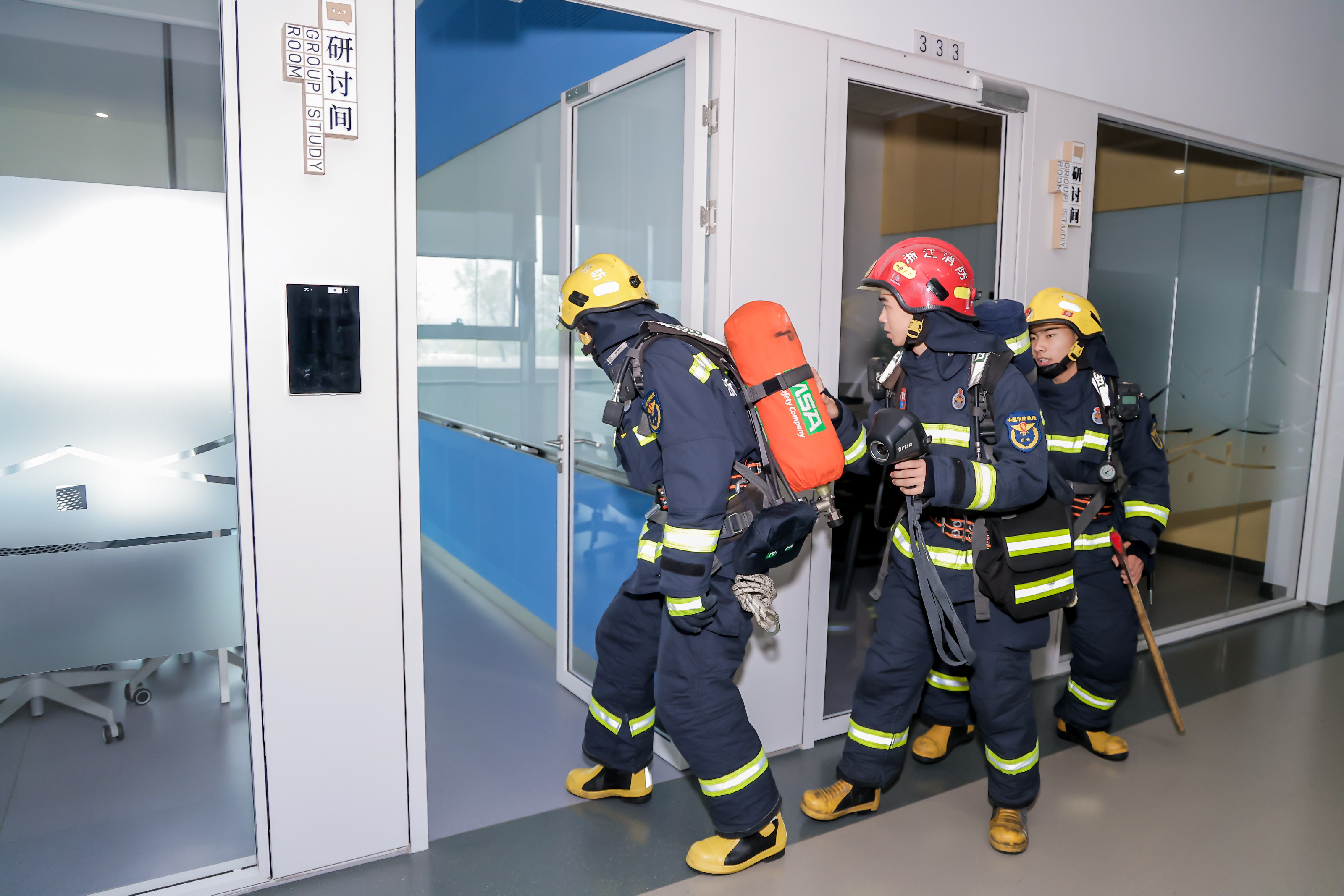 各楼层引导员闻讯而动,迅速展开逃生引导,指引师生按照预定路线有序撤离。同时,分中心其他员工积极参与到协同联络组的工作中,对各楼层及房间疏散情况进行复核,确保所有人员安全撤离。