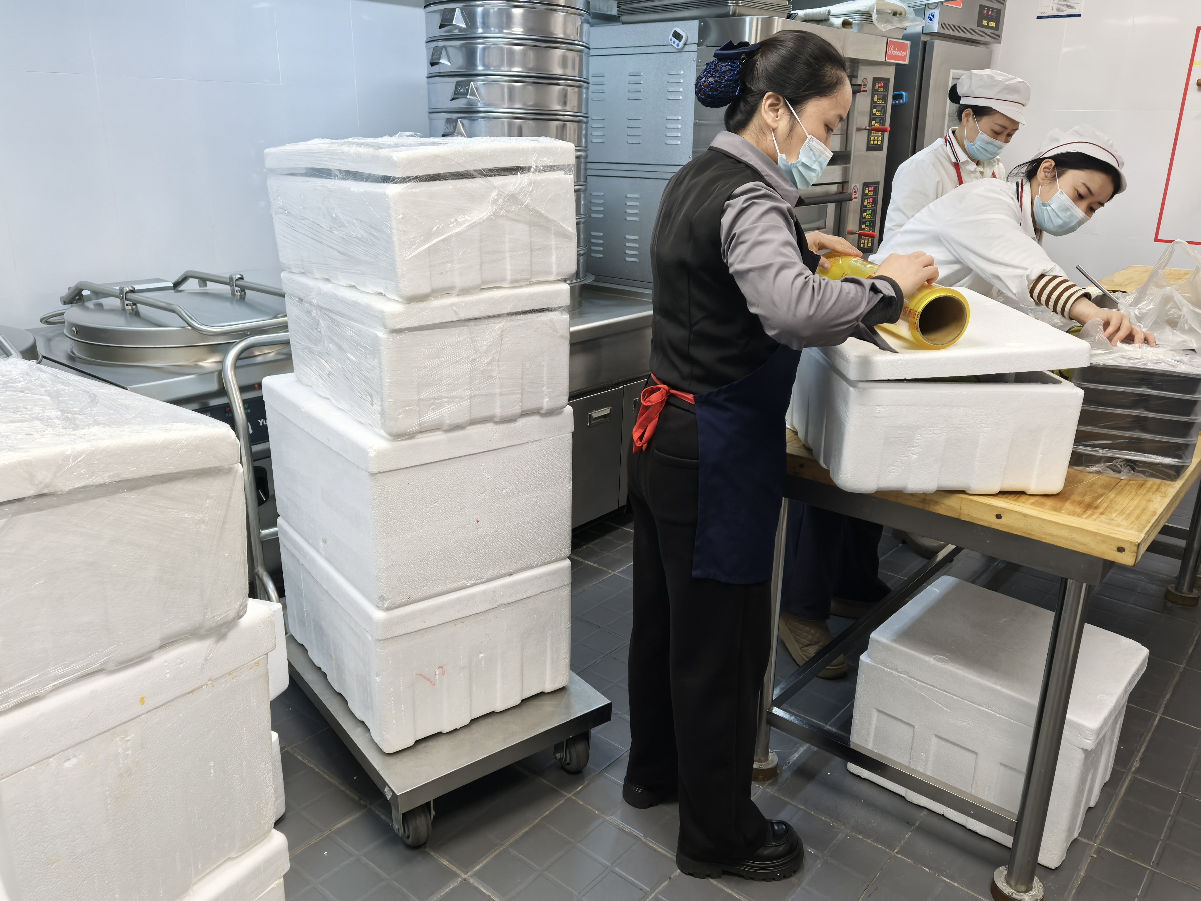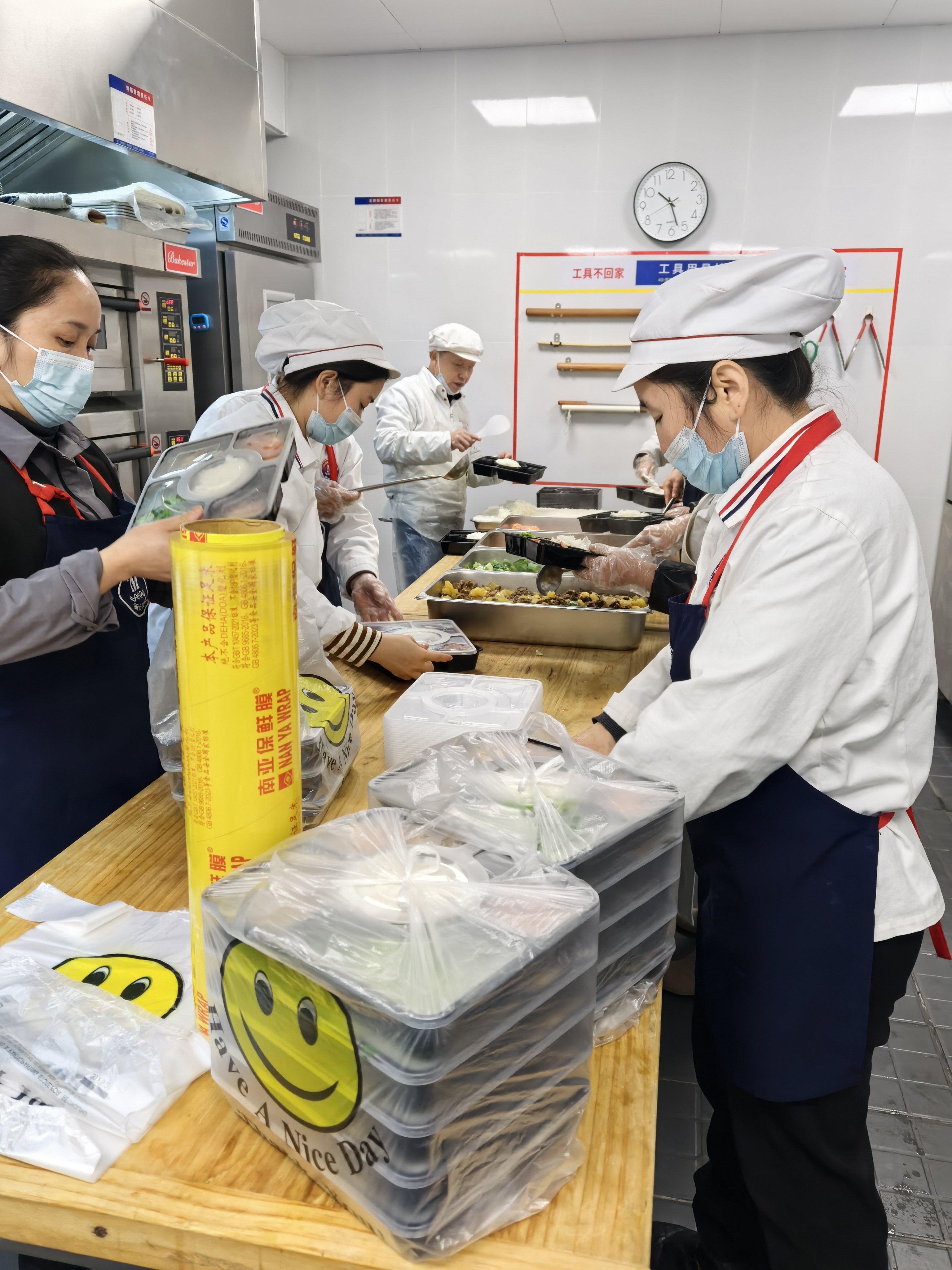 与此同时,另一批工作人员则负责快餐的分装和打包工作。他们动作娴熟,将一份份热气腾腾的饭菜整齐地装入餐盒,确保每一份快餐都分量充足、菜品丰富。为了满足一百多份快餐的需求,他们不辞辛劳,连续工作数小时,却始终保持着高度的专注和认真,不放过任何一个细节。
