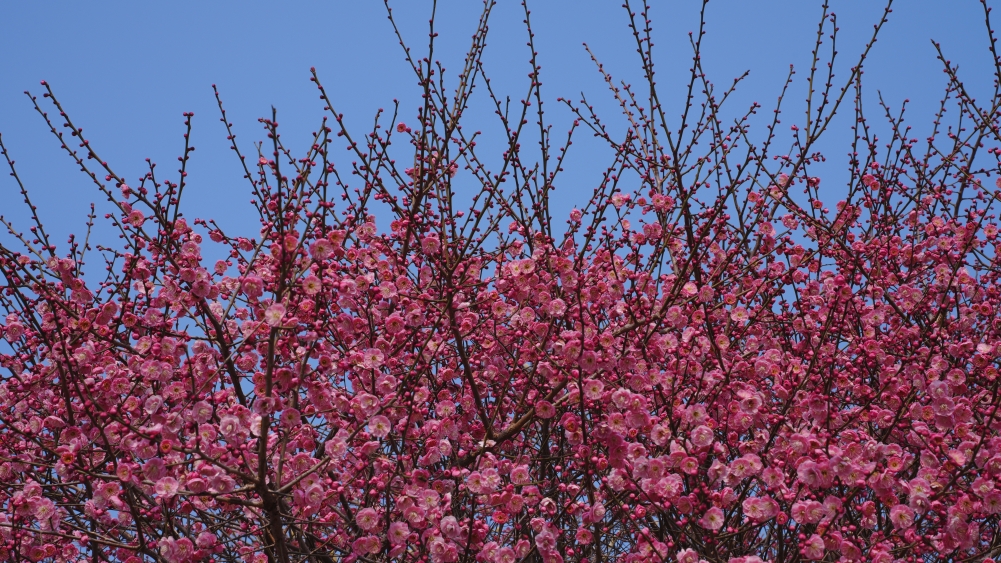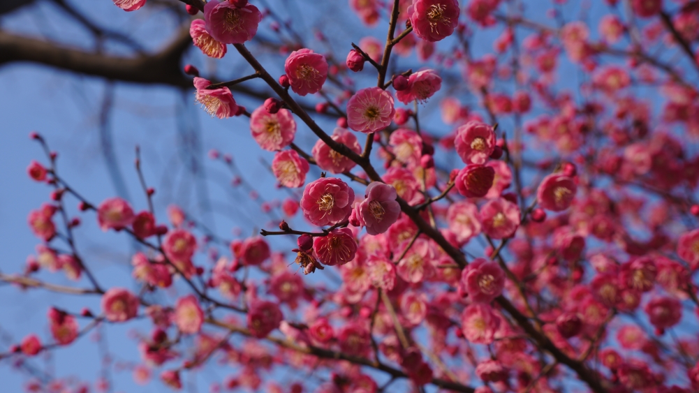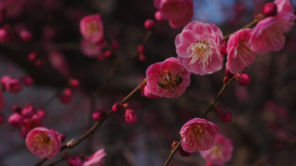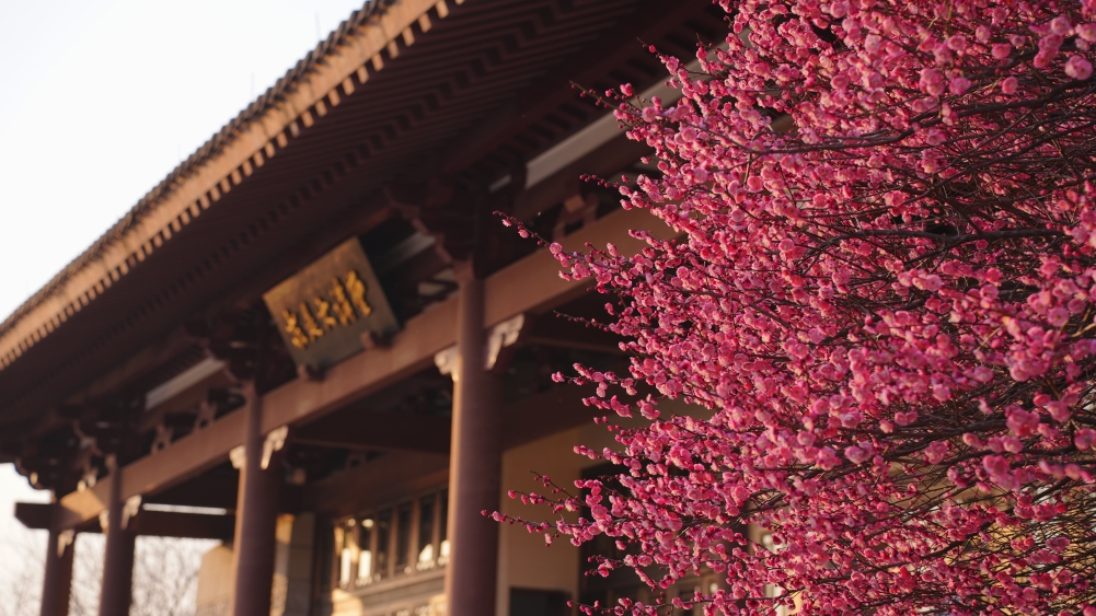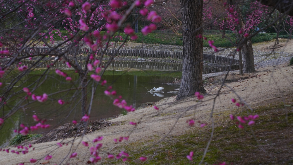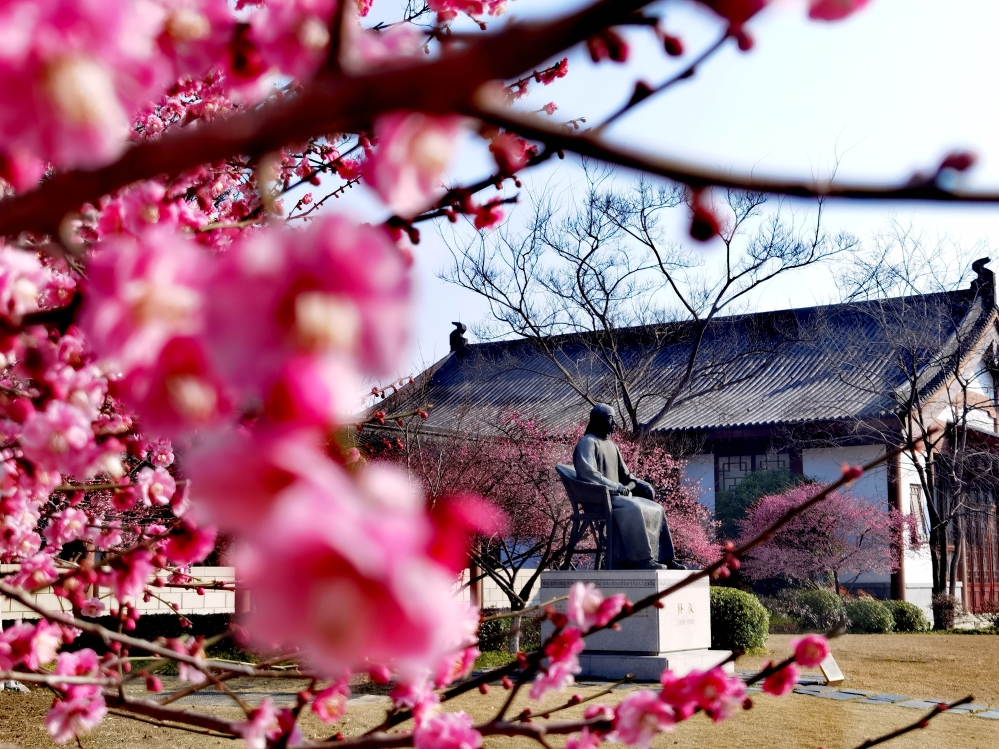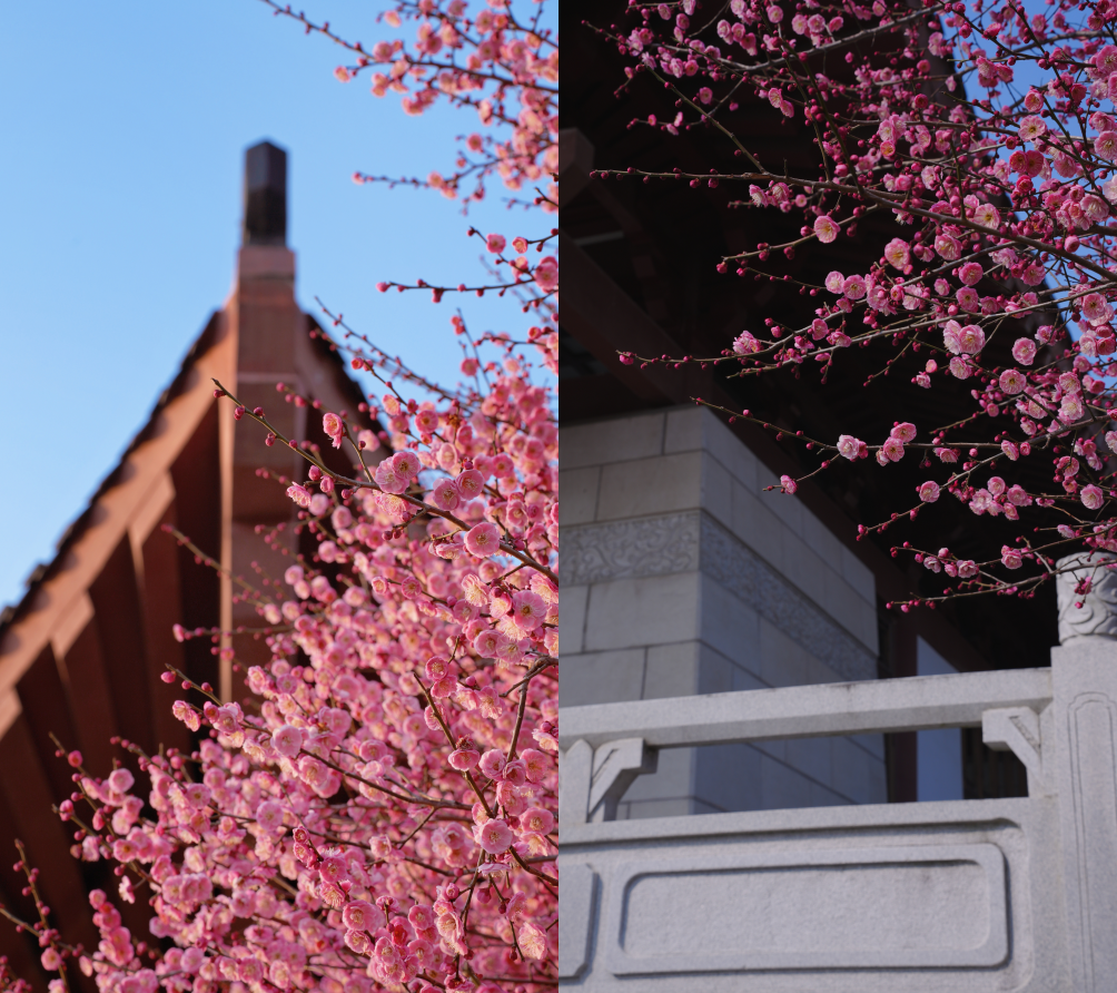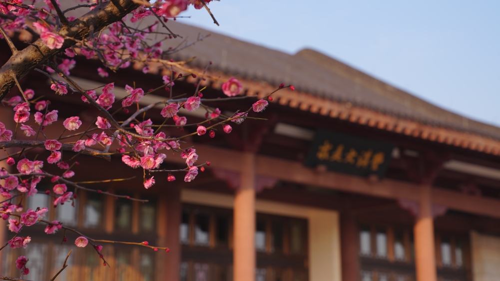 在紫金港校区求是大讲堂、化学实验中心等区域,红梅凌寒而开,暗香浮动。北山、大食堂等区域的白梅也不甘示弱,相继吐蕊绽放。微风轻拂,花影婆娑,清香四溢,让人心旷神怡。
