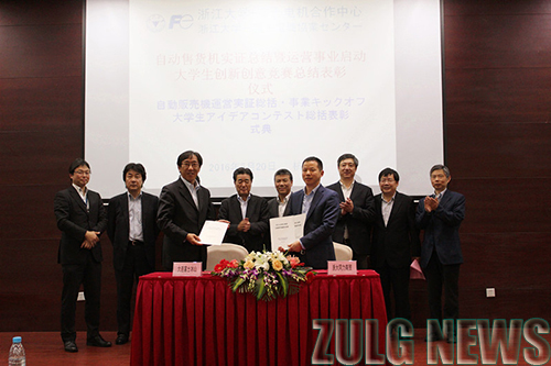 5月20日,浙江大学-富士电机合作中心自动售货机实证总结暨运营事业启动仪式在紫金港启真酒店举行,浙江...