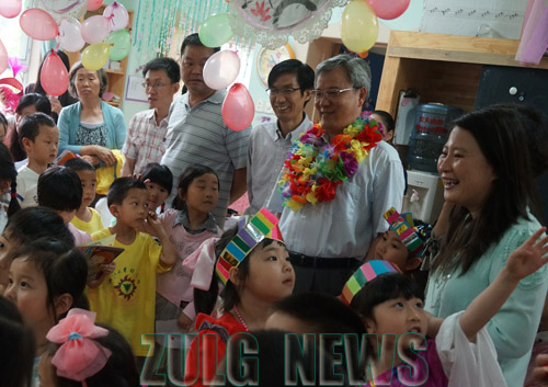 5月31日上午,浙江大学副校长褚健,在校工会常务副主席楼成礼、后勤集团总裁徐金强的陪同下,来到幼教服...