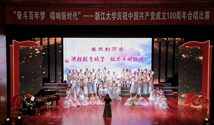 为庆祝中国共产党成立100周年,6月29日晚,“奋斗百年梦 唱响新时代”浙江大学师生大合唱比赛决赛在紫金...