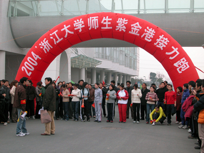 1月7日下午,由校工会组织的2004浙江大学师生紫金港接力跑比赛在紫金港校区举行。由潘明钢、王力群等10...